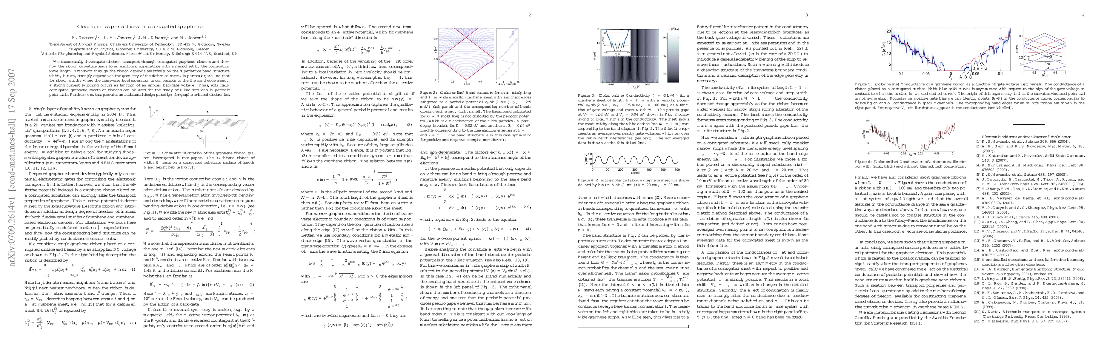 This paper explores electron transport in corrugated graphene ribbons, revealing how curvature induces an electronic superlattice whose period is determined by the corrugation wavelength. The study finds strong current switching behavior as a function of applied voltage due to the superlattice band structure, suggesting potential applications in graphene-based electronics.