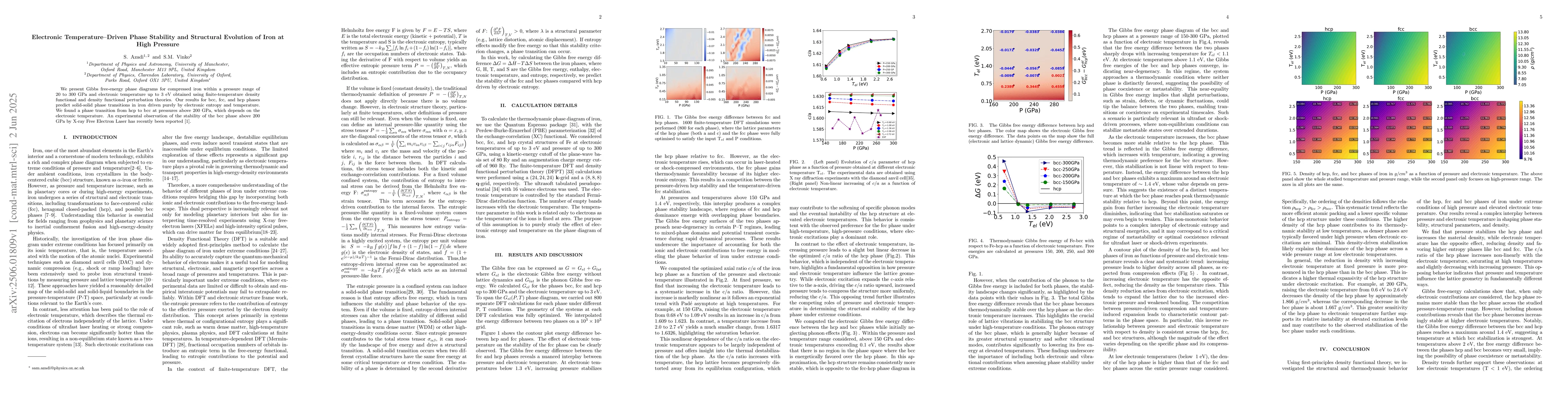 Researchers have discovered that iron can undergo phase transitions driven solely by electronic temperature and entropy at high pressures, with a previously unreported transition from hcp to bcc phases above 200 GPa.