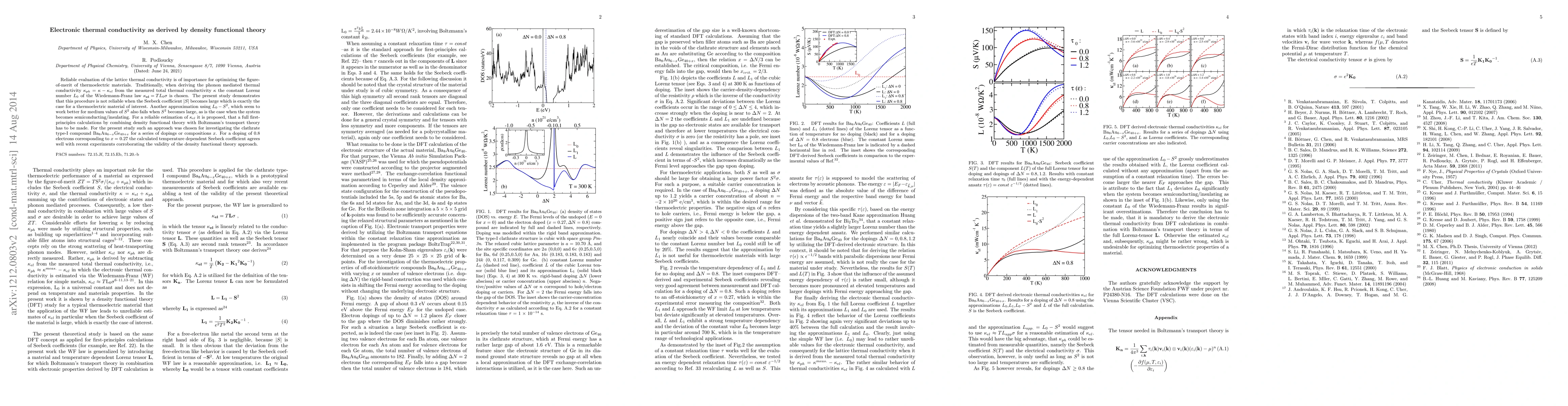 Reliable evaluation of the lattice thermal conductivity is of importance for optimizing the figure-of-merit of thermoelectric materials. Traditionally, when deriving the phonon mediated thermal conductivity $\kappa_{ph} = \kappa - \kappa_{el}$ from the measured total thermal conductivity $\kappa$ the constant Lorenz number $L_0$ of the Wiedemann-Franz law \mbox{$\mathbf{\kappa_{el}}=T L_0 \sigma$} is chosen. The present study demonstrates that this procedure is not reliable when the Seebeck coefficient $|S|$ becomes large which is exactly the case for a thermoelectric material of interest. Another approximation using $L_0-S^2$, which seem to work better for medium values of $S^2$ also fails when $S^2$ becomes large, as is the case when the system becomes semiconducting/insulating. For a reliable estimation of $\kappa_{el}$ it is proposed, that a full first-principles calculations by combining density functional theory with Boltzmann's transport theory has to be made. For the present study such an approach was chosen for investigating the clathrate type-I compound Ba$_8$Au$_{6-x}$Ge$_{40+x}$ for a series of dopings or compositions $x$. For a doping of $0.8$ electrons corresponding to $x=0.27$ the calculated temperature dependent Seebeck coefficient agrees well with recent experiments corroborating the validity of the density functional theory approach.