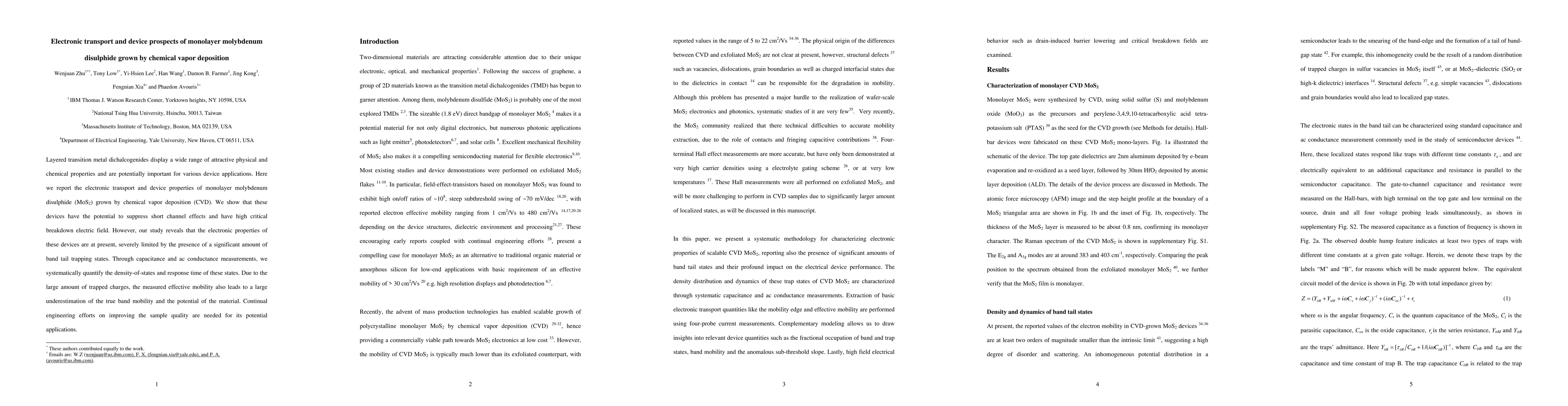 This study investigates monolayer MoS2 grown via CVD, revealing its promising device potential but highlighting significant band tail trapping states that limit current electronic properties. Future engineering improvements are essential to unlock the material's full potential for device applications.