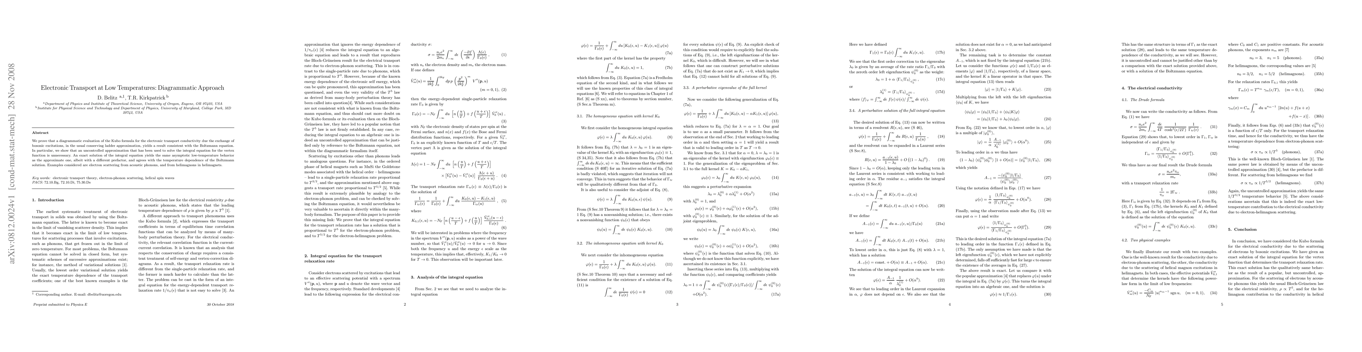 This paper demonstrates that a diagrammatic evaluation of the Kubo formula for electronic transport conductivity at low temperatures, using the conserving ladder approximation, yields results consistent with the Boltzmann equation. It shows that an approximate method used to solve the vertex function's integral equation is unnecessary, as an exact solution produces the same low-temperature behavior, albeit with a different prefactor.