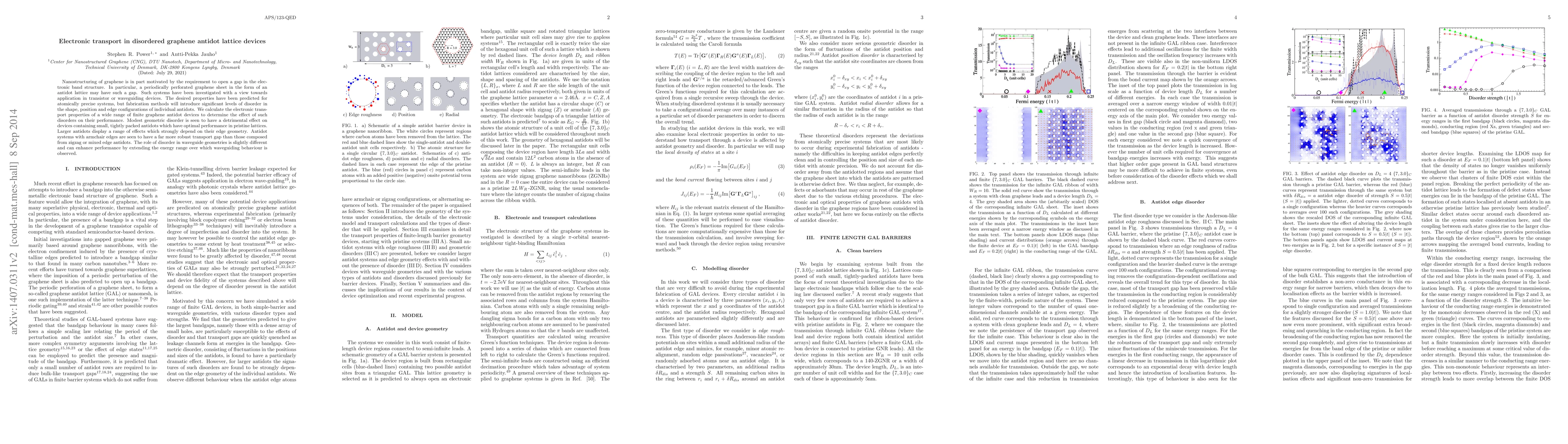 This paper examines electronic transport in graphene antidot lattice devices with various levels of geometric disorder. Small, tightly packed antidots show reduced performance due to disorder, while larger antidots exhibit variable effects depending on edge geometry, with armchair edges maintaining a robust transport gap, and zigzag or mixed edges being less resilient. Disorder can enhance waveguiding performance by extending the energy range of observed behavior.