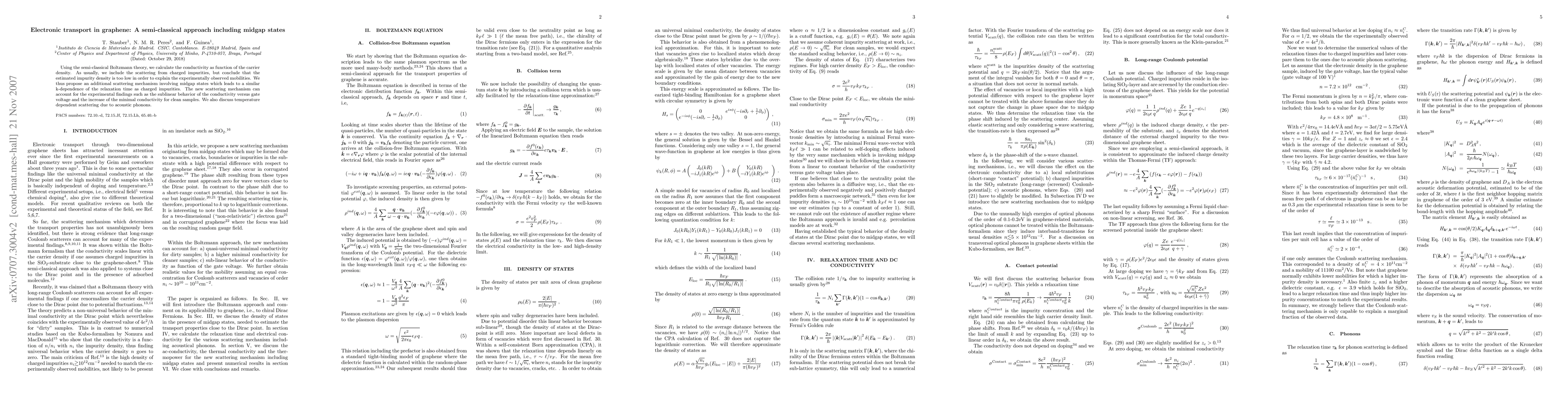 Using the semi-classical Boltzmann theory, we calculate the conductivity as function of the carrier density. As usually, we include the scattering from charged impurities, but conclude that the estimated impurity density is too low in order to explain the experimentally observed mobilities. We thus propose an additional scattering mechanism involving midgap states which leads to a similar k-dependence of the relaxation time as charged impurities. The new scattering mechanism can account for the experimental findings such as the sublinear behavior of the conductivity versus gate voltage and the increase of the minimal conductivity for clean samples. We also discuss temperature dependent scattering due to acoustic phonons.
