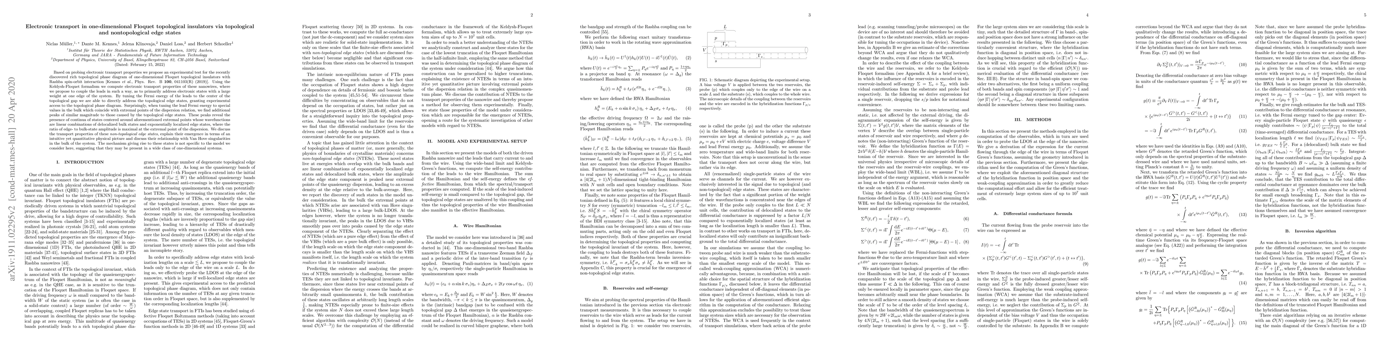 Based on probing electronic transport properties we propose an experimental test for the recently discovered rich topological phase diagram of one-dimensional Floquet topological insulators with Rashba spin-orbit interaction [Kennes \emph{et al.}, Phys. Rev. B {\bf 100}, 041103(R) (2019)]. Using the Keldysh-Floquet formalism we compute electronic transport properties of these nanowires, where we propose to couple the leads in such a way, as to primarily address electronic states with a large weight at one edge of the system. By tuning the Fermi energy of the leads to the center of the topological gap we are able to directly address the topological edge states, granting experimental access to the topological phase diagram. Surprisingly, when tuning the lead Fermi energy to special values in the bulk which coincide with extremal points of the dispersion relation, we find additional peaks of similar magnitude to those caused by the topological edge states. These peaks reveal the presence of continua of states centered around aforementioned extremal points whose wavefunctions are linear combinations of delocalized bulk states and exponentially localized edge states, where the ratio of edge- to bulk-state amplitude is maximal at the extremal point of the dispersion. We discuss the transport properties of these \emph{non-topological edge states}, explain their emergence in terms of an intuitive yet quantitative physical picture and discuss their relationship with Van Hove singularities in the bulk of the system. The mechanism giving rise to these states is not specific to the model we consider here, suggesting that they may be present in a wide class of one-dimensional systems.