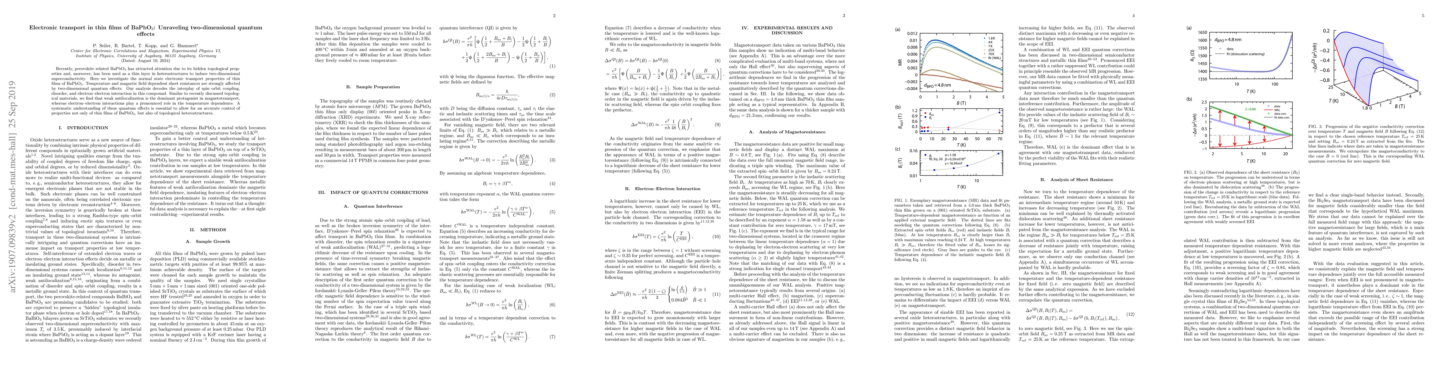 This paper investigates the electronic transport in thin films of BaPbO$_3$, revealing significant two-dimensional quantum effects. It finds that weak antilocalization and electron-electron interactions dominate the transport properties, influenced by spin-orbit coupling and disorder, which is crucial for understanding topological heterostructures.