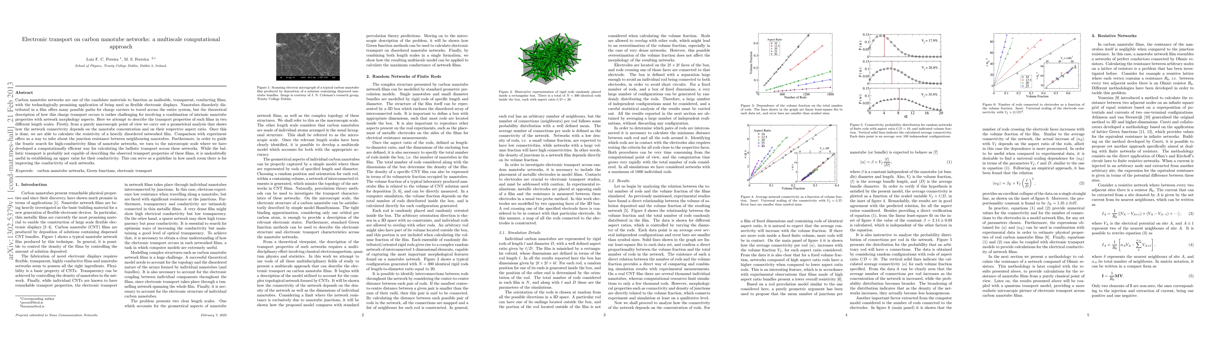 Researchers studied electronic transport in carbon nanotube networks using a multiscale approach, combining macroscopic and microscopic simulations to understand how charge carriers move through the network, and found that ballistic transport provides an upper limit for conductivity.