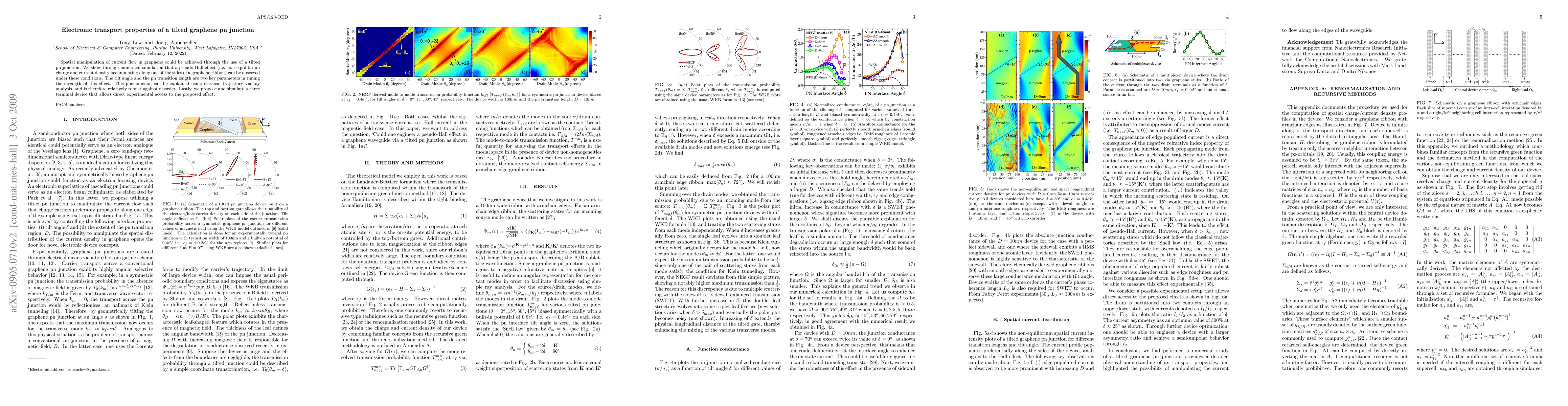 This paper investigates the electronic transport properties in a tilted graphene pn junction, demonstrating a pseudo-Hall effect through numerical simulations. The study highlights the influence of tilt angle and pn transition length on the effect's strength, proposing a three-terminal device for experimental validation.