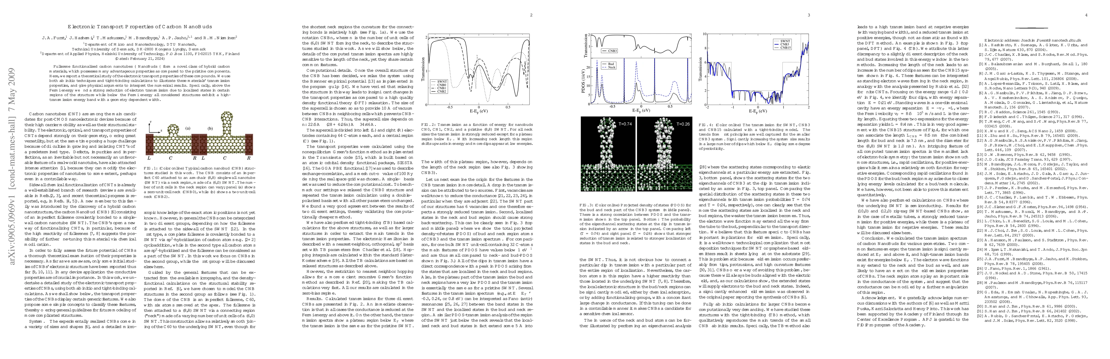 This paper investigates the electronic transport properties of carbon nanobuds using ab initio and tight-binding calculations. It finds reduced electron transmission above the Fermi energy due to localized states, while below the Fermi energy, high-transmission energy bands with geometry-dependent widths are observed.