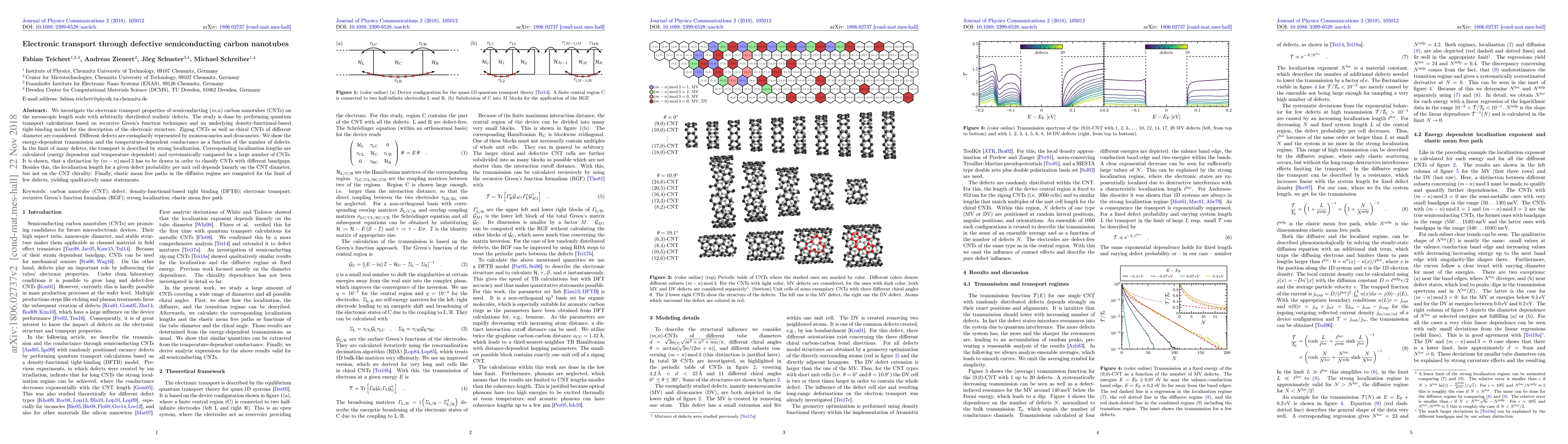 This paper investigates electronic transport in semiconducting carbon nanotubes with realistic defects using quantum transport calculations. It finds that strong localization and energy-dependent localization lengths are prominent, with variations dependent on the tube's diameter but not its chirality.