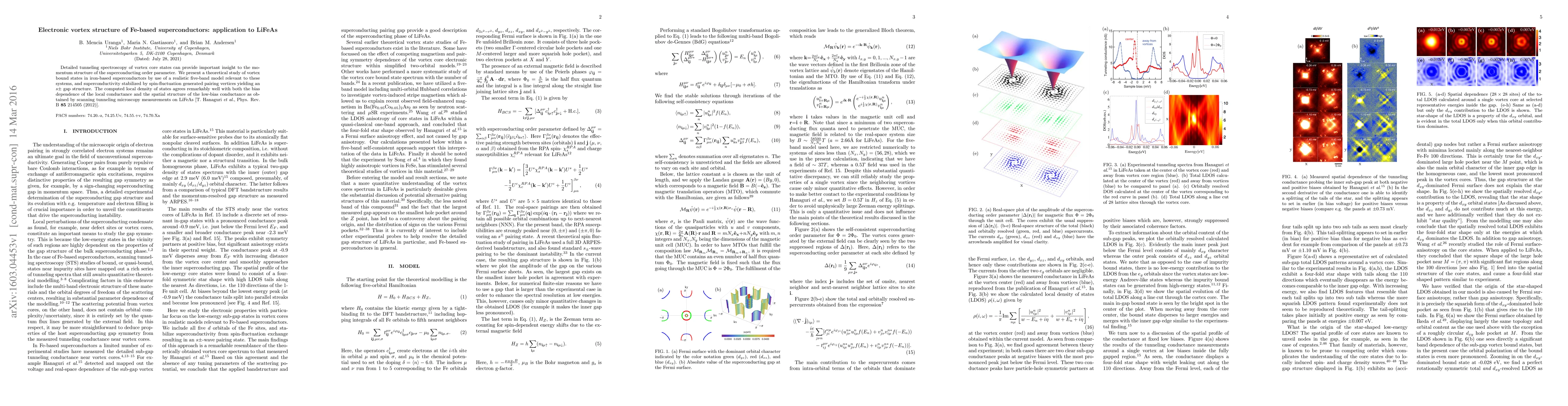 This paper presents a theoretical study of vortex bound states in Fe-based superconductors using a five-band model, revealing an $s\pm$ gap structure. The results match experimental tunneling spectroscopy data on LiFeAs, providing insights into the momentum structure of the superconducting order parameter.
