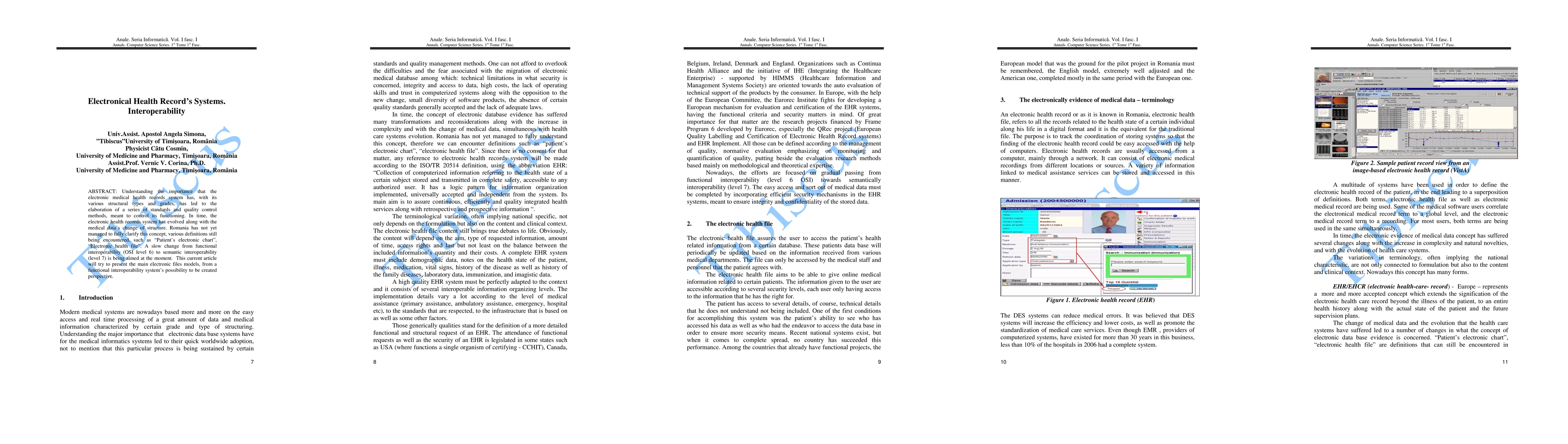 This paper explores the evolution and standardization of electronic health records systems, emphasizing the shift from functional to semantic interoperability. It examines various models and the challenges Romania faces in fully implementing these systems.