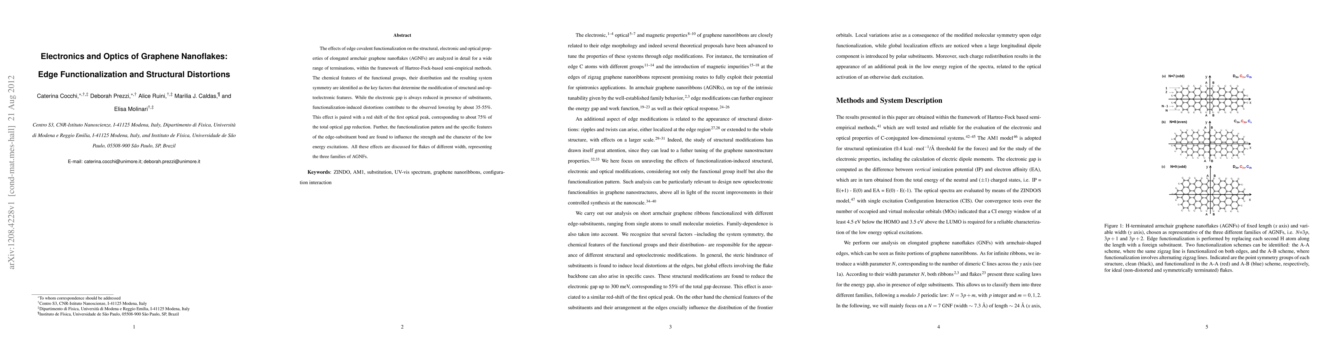 This study investigates how edge functionalization alters the structural, electronic, and optical properties of armchair graphene nanoflakes, revealing that functional group features and structural distortions reduce the electronic gap and shift the optical peak, with specific patterns influencing low-energy excitations.