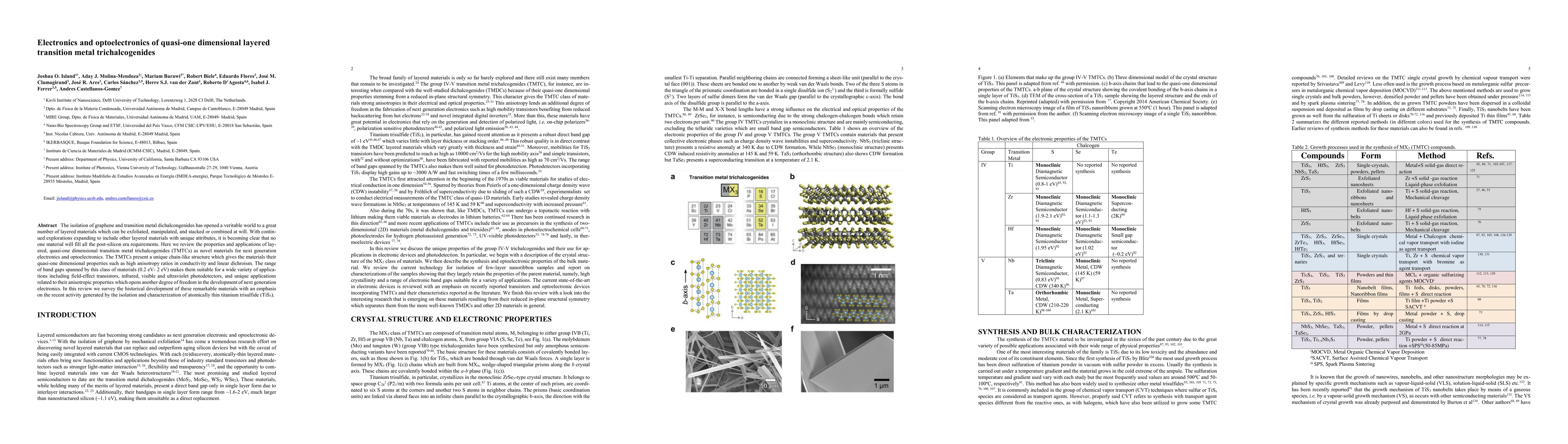 The isolation of graphene and transition metal dichalcongenides has opened a veritable world to a great number of layered materials which can be exfoliated, manipulated, and stacked or combined at will. With continued explorations expanding to include other layered materials with unique attributes, it is becoming clear that no one material will fill all the post-silicon era requirements. Here we review the properties and applications of layered, quasi-one dimensional transition metal trichalcogenides (TMTCs) as novel materials for next generation electronics and optoelectronics. The TMTCs present a unique chain-like structure which gives the materials their quasi-one dimensional properties such as high anisotropy ratios in conductivity and linear dichroism. The range of band gaps spanned by this class of materials (0.2 eV- 2 eV) makes them suitable for a wide variety of applications including field-effect transistors, infrared, visible and ultraviolet photodetectors, and unique applications related to their anisotropic properties which opens another degree of freedom in the development of next generation electronics. In this review we survey the historical development of these remarkable materials with an emphasis on the recent activity generated by the isolation and characterization of atomically thin titanium trisulfide (TiS3).