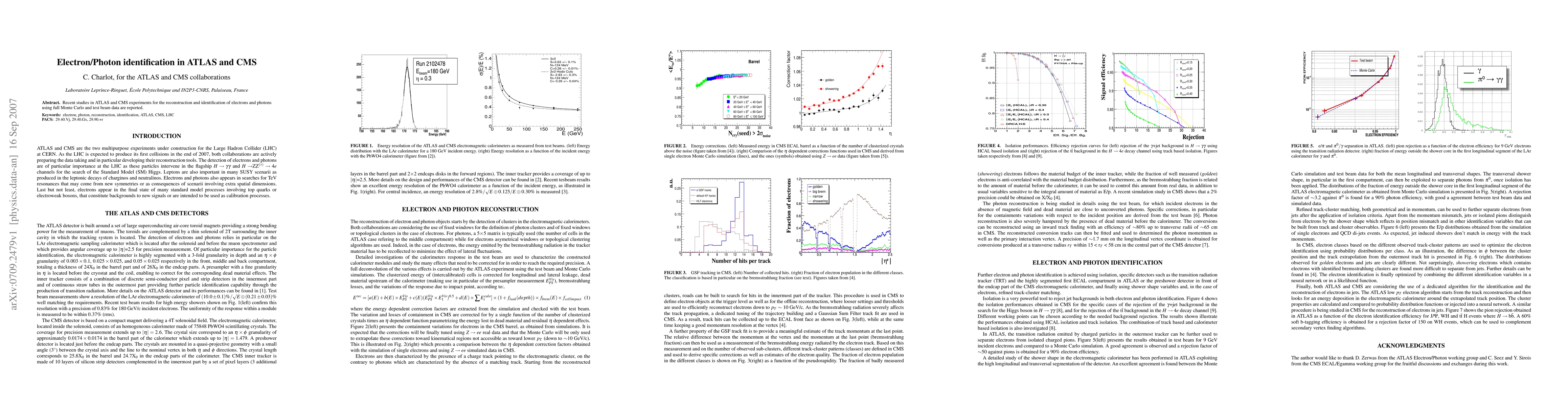 Summary: This paper reports on the methods and results of electron and photon identification in the ATLAS and CMS experiments, utilizing comprehensive Monte Carlo simulations and testbeam data for reconstruction and identification accuracy. The findings enhance the precision of particle detection in high-energy physics.
