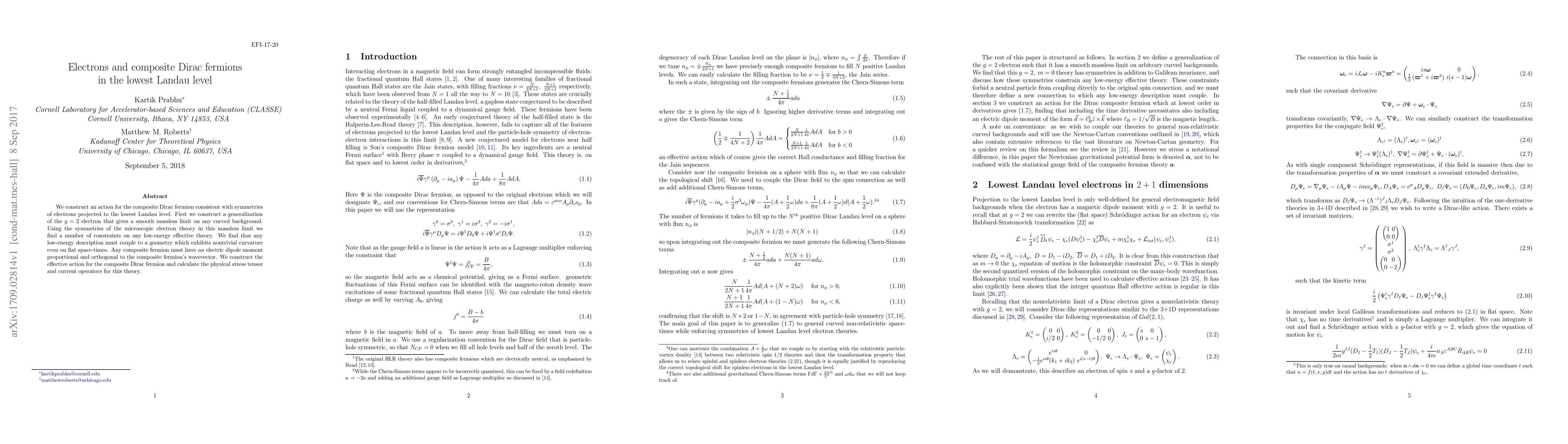 We construct an action for the composite Dirac fermion consistent with symmetries of electrons projected to the lowest Landau level. First we construct a generalization of the $g=2$ electron that gives a smooth massless limit on any curved background. Using the symmetries of the microscopic electron theory in this massless limit we find a number of constraints on any low-energy effective theory. We find that any low-energy description must couple to a geometry which exhibits nontrivial curvature even on flat space-times. Any composite fermion must have an electric dipole moment proportional and orthogonal to the composite fermion's wavevector. We construct the effective action for the composite Dirac fermion and calculate the physical stress tensor and current operators for this theory.