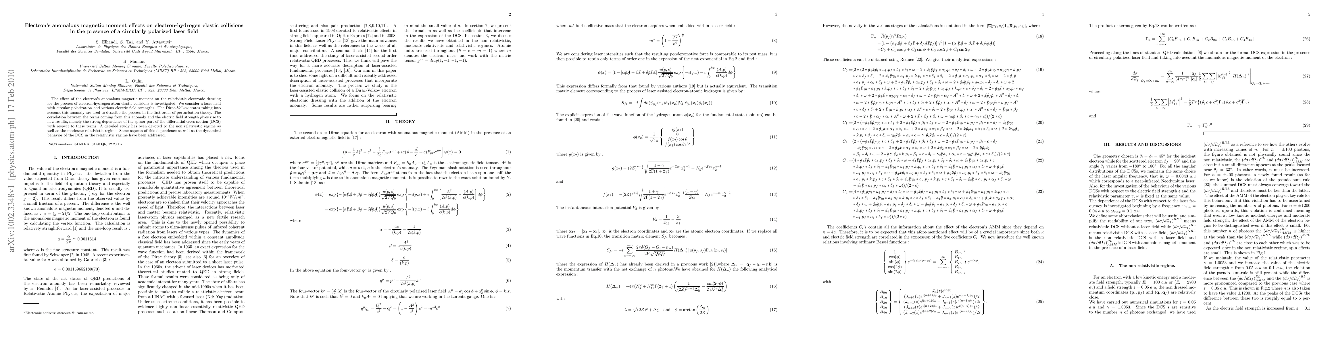 This paper investigates how the electron's anomalous magnetic moment affects electron-hydrogen elastic collisions under a circularly polarized laser field. It uses Dirac-Volkov states to analyze the process, revealing a strong dependence of the differential cross section on both the electric field strength and the magnetic moment anomaly, with detailed studies in both non-relativistic and moderate relativistic regimes.