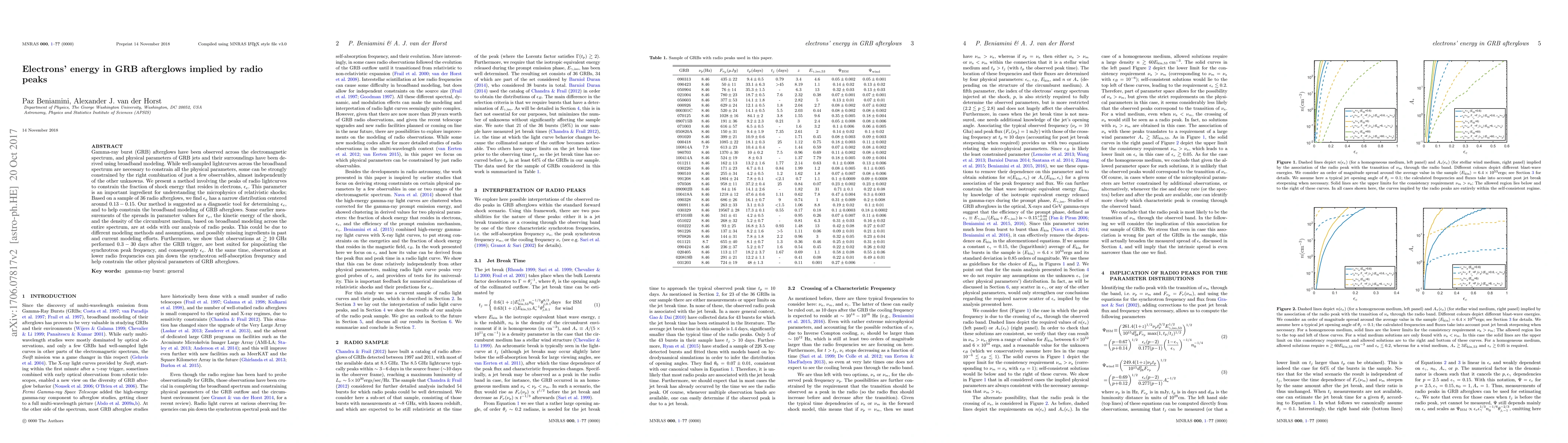 Researchers have developed a method to constrain the fraction of shock energy that resides in electrons using radio peaks from gamma-ray burst afterglows, finding a narrow distribution around 0.13-0.15, and suggesting this as a diagnostic tool for broadband modeling.