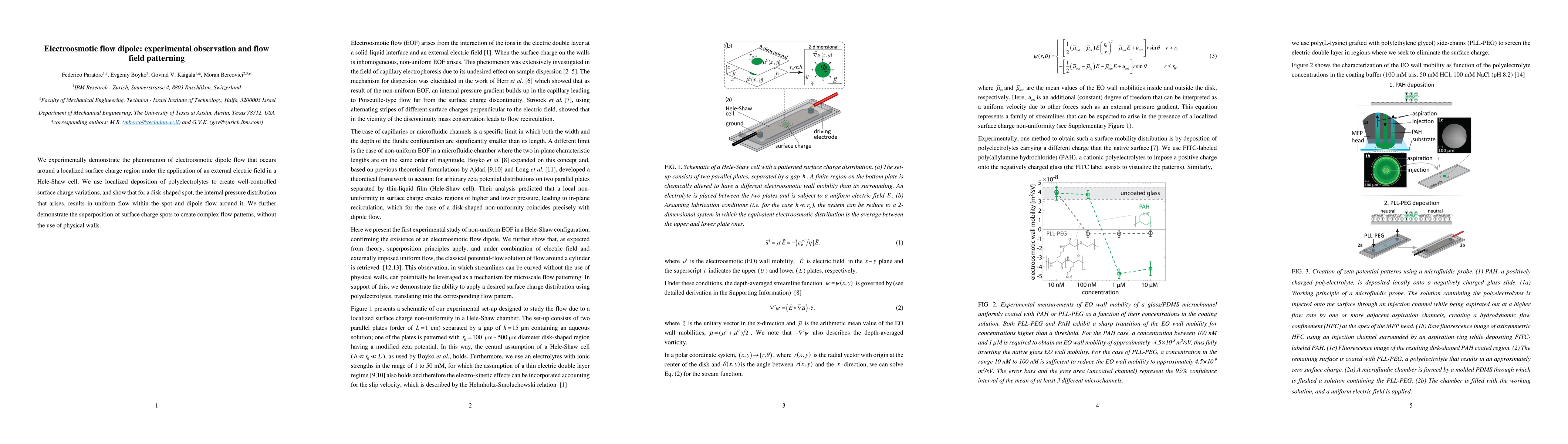 We experimentally demonstrate the phenomenon of electroosmotic dipole flow that occurs around a localized surface charge region under the application of an external electric field in a Hele-Shaw cell. We use localized deposition of polyelectrolytes to create well-controlled surface charge variations, and show that for a disk-shaped spot, the internal pressure distribution that arises, results in uniform flow within the spot and dipole flow around it. We further demonstrate the superposition of surface charge spots to create complex flow patterns, without the use of physical walls.