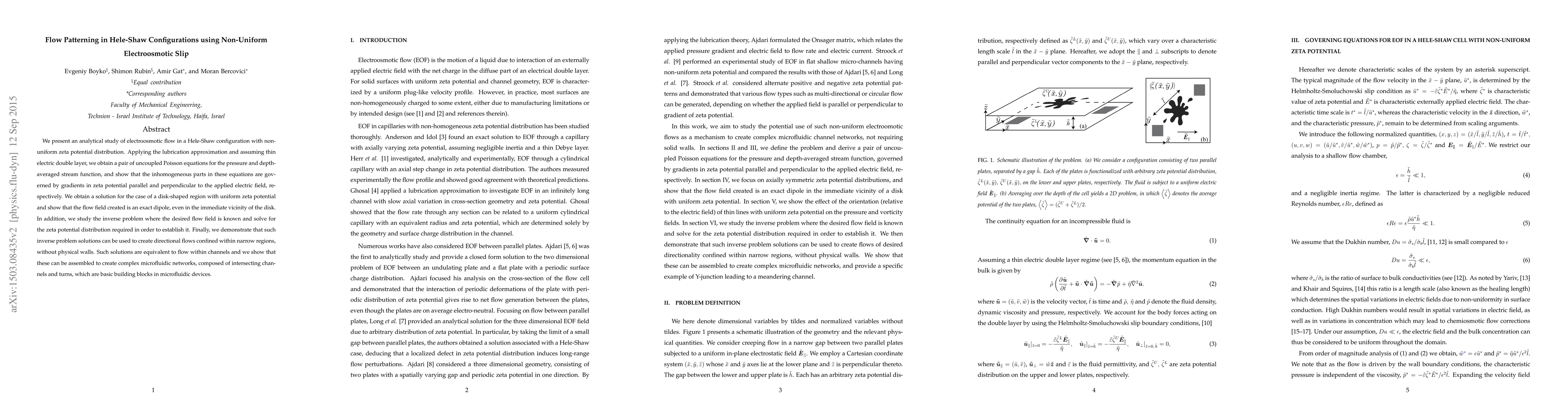 This study analytically and numerically investigates electroosmotic flow in Hele-Shaw cells with non-uniform surface charge distributions. It shows that the flow around a uniformly charged disk forms a dipole, and complex flow-fields can be generated by superimposing such disks, potentially aiding flow control in future microfluidic devices.