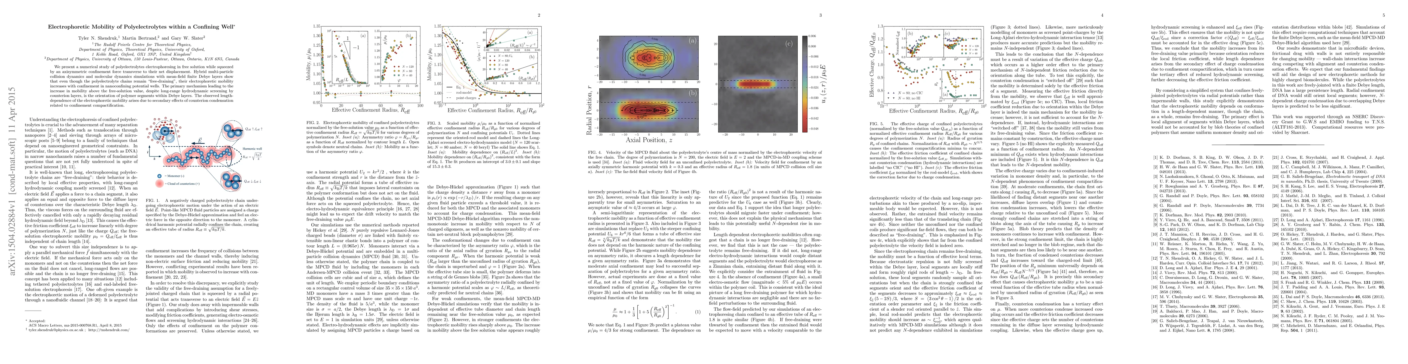 This paper investigates the electrophoretic mobility of "free-draining" polyelectrolytes confined within a nanoconfining potential well, revealing an increase in mobility due to polymer segment orientation within Debye layers. Secondary effects from counterion condensation further influence length-dependent mobility.