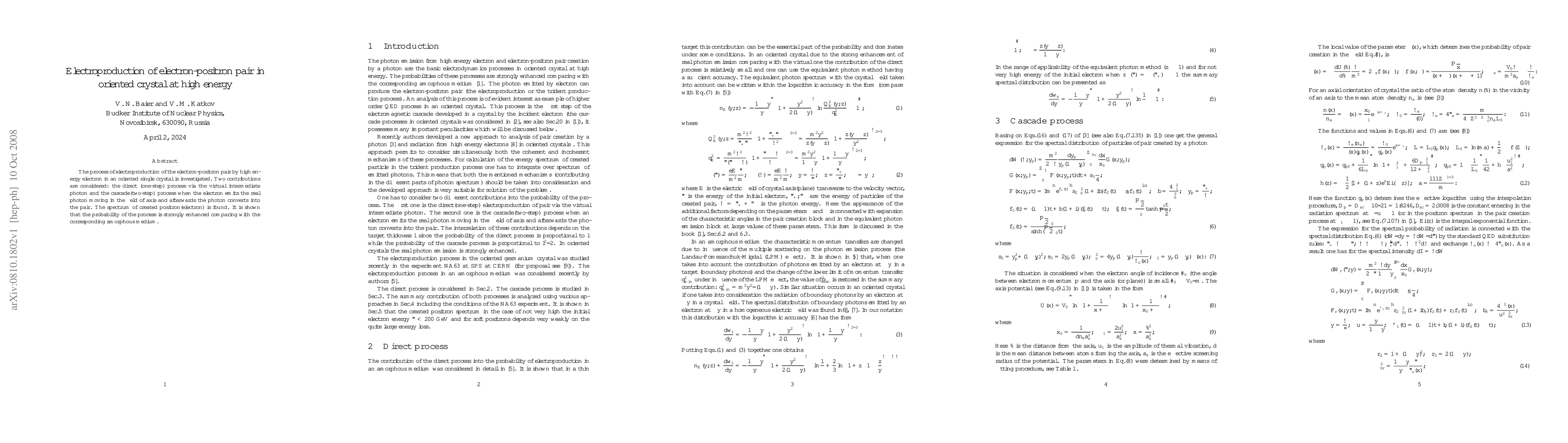 The research investigates the electroproduction of electron-positron pairs in an oriented single crystal via high-energy electrons, considering both direct and cascade processes.