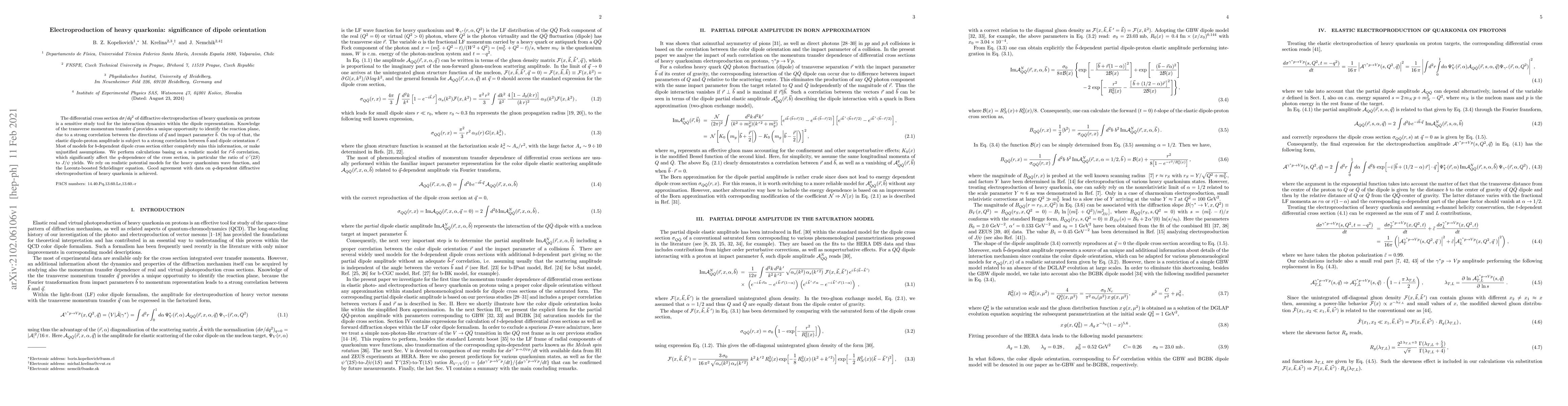 The differential cross section $d\sigma/dq^2$ of diffractive electroproduction of heavy quarkonia on protons is a sensitive study tool for the interaction dynamics within the dipole representation. Knowledge of the transverse momentum transfer $\vec q$ provides a unique opportunity to identify the reaction plane, due to a strong correlation between the directions of $\vec q$ and impact parameter $\vec b$. On top of that, the elastic dipole-proton amplitude is subject to a strong correlation between $\vec b$ and dipole orientation $\vec r$. Most of models for $b$-dependent dipole cross section either completely miss this information, or make unjustified assumptions. We perform calculations basing on a realistic model for $\vec r$-$\vec b$ correlation, which significantly affect the $q$-dependence of the cross section, in particular the ratio of $\psi^{\,\prime}(2S)$ to $J/\psi$ yields. We rely on realistic potential models for the heavy quarkonium wave function, and the Lorentz-boosted Schr\"odinger equation. Good agreement with data on $q$-dependent diffractive electroproduction of heavy quarkonia is achieved.