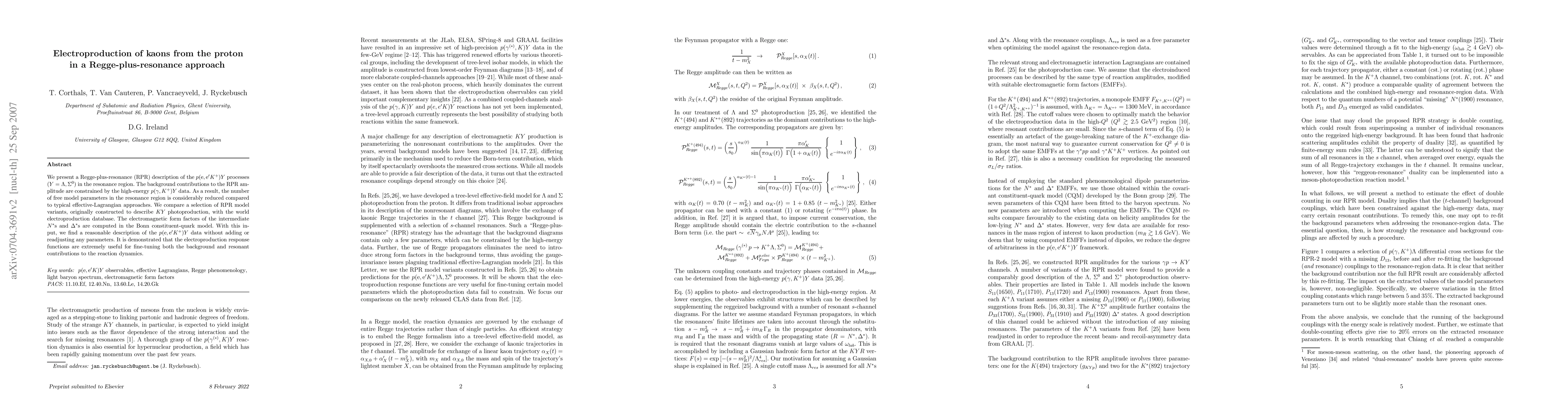 Researchers describe a Regge-plus-resonance approach to electroproduction of kaons from protons, reducing model parameters and achieving a reasonable fit with experimental data without added or adjusted parameters.
