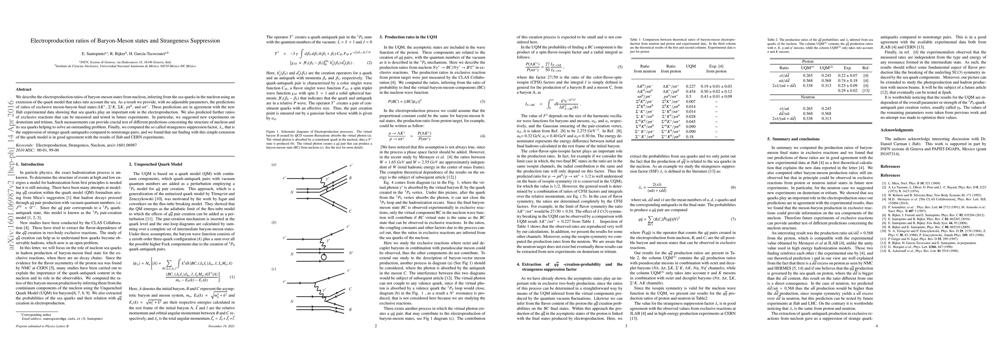 This research uses an extended quark model to predict electroproduction ratios of baryon-meson states from nucleon, attributing the influence to sea quarks within the nucleon. The predictions align with JLab's new experimental data, suggesting sea quarks' significant role in electroproduction. The study also proposes future experiments on deuterium and tritium for further validation. Additionally, it calculates the strangeness suppression factor, finding agreement with JLab and CERN experiment results.
