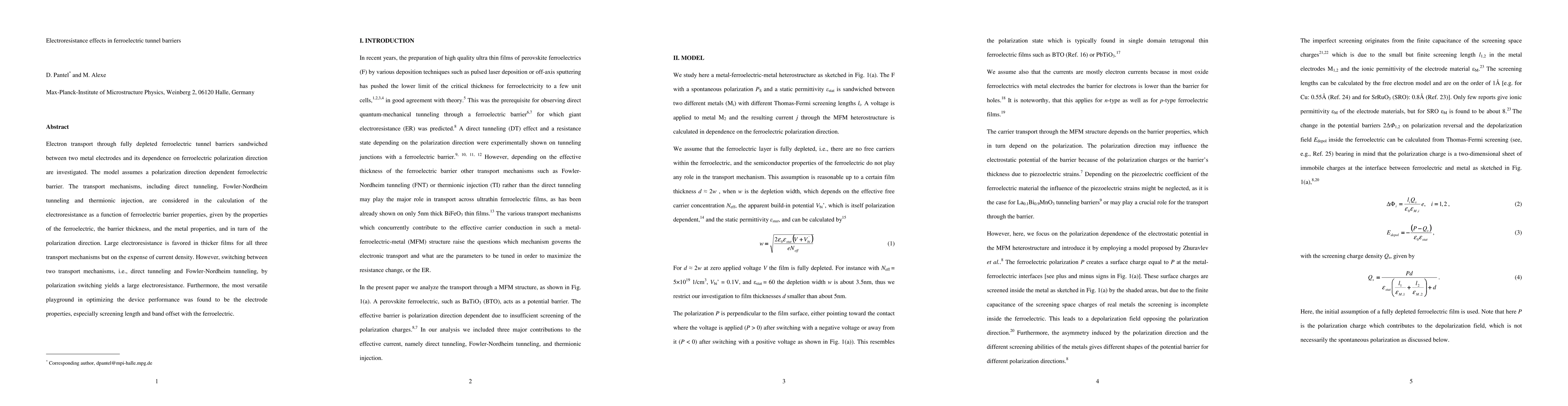The paper presents a comprehensive analysis of electron transport mechanisms in ferroelectric tunnel barriers, highlighting the role of polarization direction and electrode properties in optimizing electroresistance.