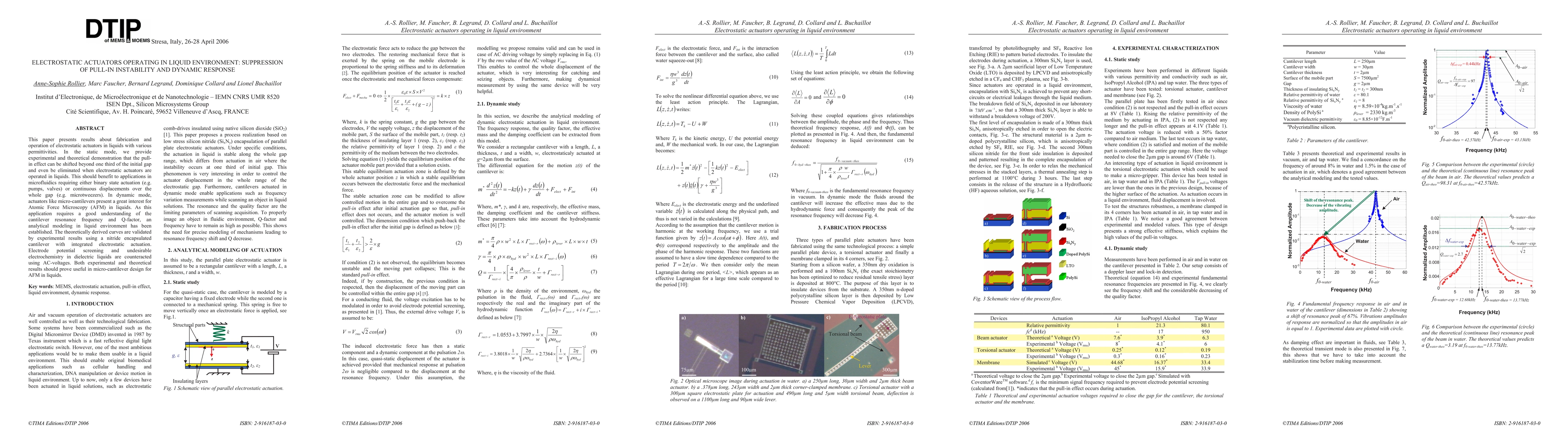 This paper investigates electrostatic actuators in liquid environments, demonstrating that pull-in instability can be suppressed or eliminated, benefiting microfluidic applications. It also models dynamic response for micro-cantilevers in Atomic Force Microscopy, validated by experiments and useful for designing such devices in liquid.