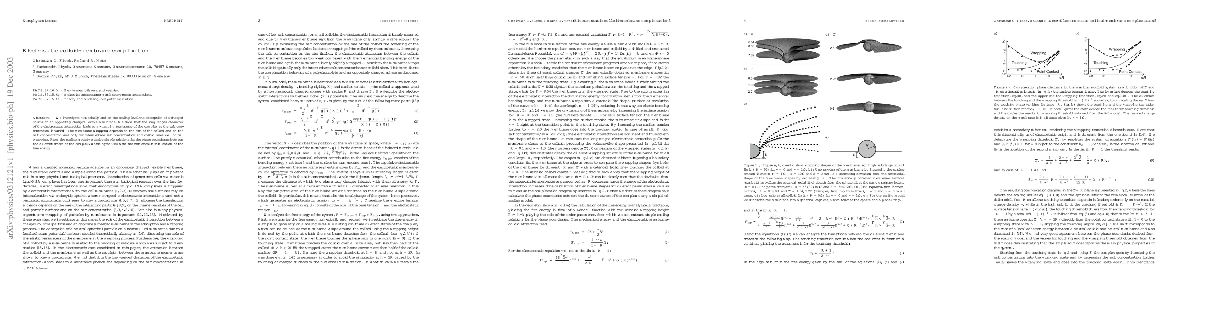 This paper explores the electrostatic interaction between charged colloids and oppositely charged flexible membranes, revealing that long-range electrostatic forces cause the complex to wrap under certain conditions. The study finds full wrapping occurs only for intermediate colloid sizes and salt concentrations, and derives scaling relations for the phase boundaries of the complex states.