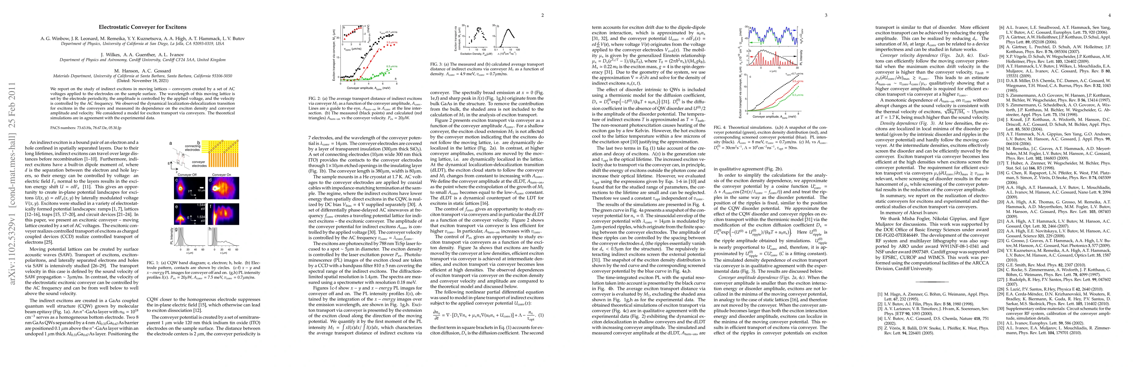 This paper investigates the behavior of indirect excitons in electrostatic conveyers formed by AC voltages on sample electrodes. The study observes a dynamical localization-delocalization transition in excitons, which depends on exciton density and conveyer parameters, and validates a theoretical model with experimental data.