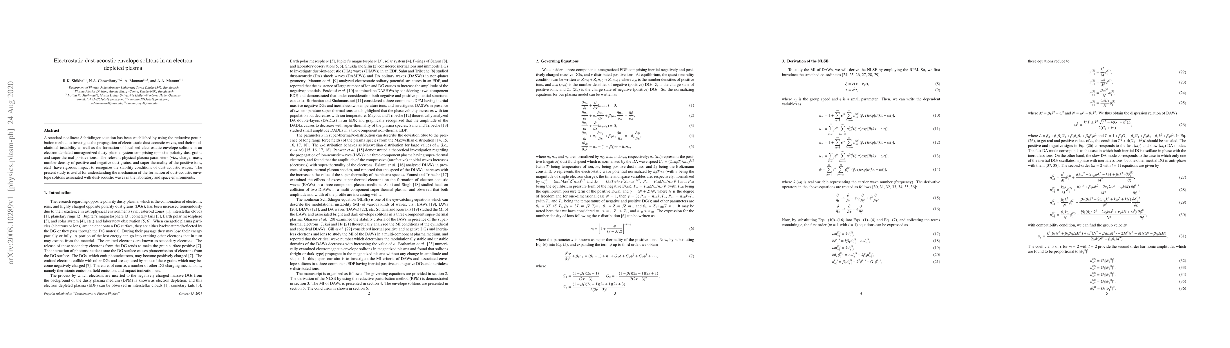 This paper investigates electrostatic dust-acoustic waves in electron-depleted dusty plasmas using a nonlinear Schrödinger equation, revealing the formation of envelope solitons and their modulational instability. The study highlights the influence of plasma parameters on the stability of dust-acoustic waves, providing insights into their behavior in both laboratory and space environments.