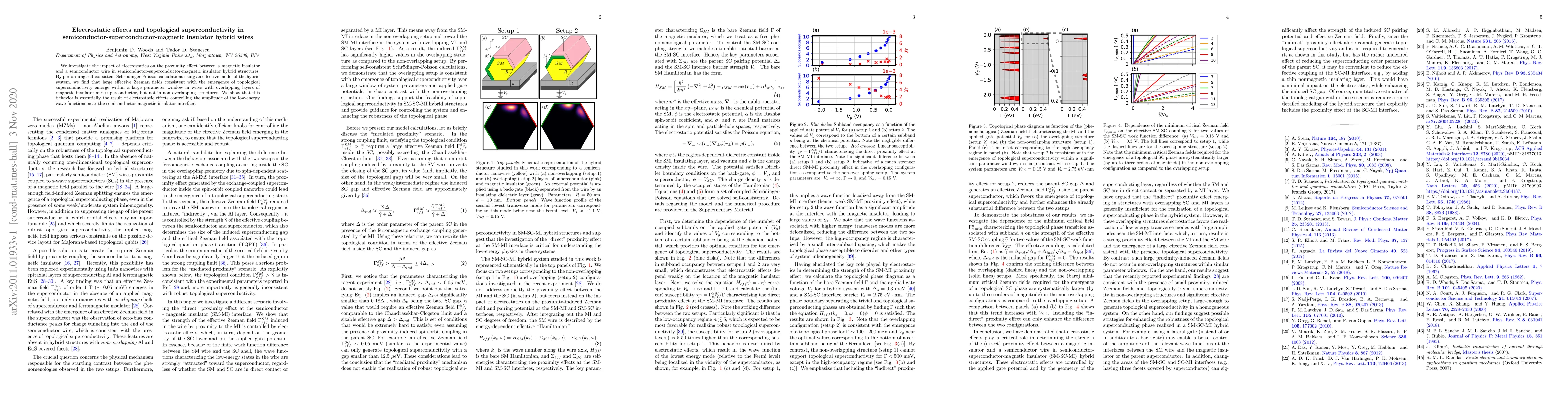 The study examines electrostatic impacts on the proximity effect in semiconductor-superconductor-magnetic insulator hybrid wires, revealing that overlapping layers induce large effective Zeeman fields leading to topological superconductivity, driven by electrostatic modulation of low-energy wave functions at the interface.