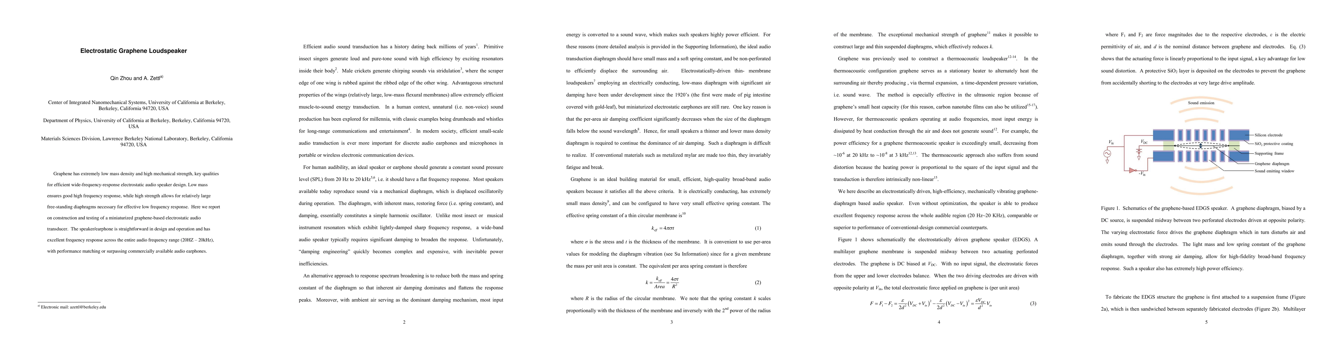 This paper details the construction and testing of a miniaturized graphene-based electrostatic loudspeaker, demonstrating excellent frequency response across the entire audio range, matching or surpassing commercial audio earphones, leveraging graphene's low mass and high mechanical strength.