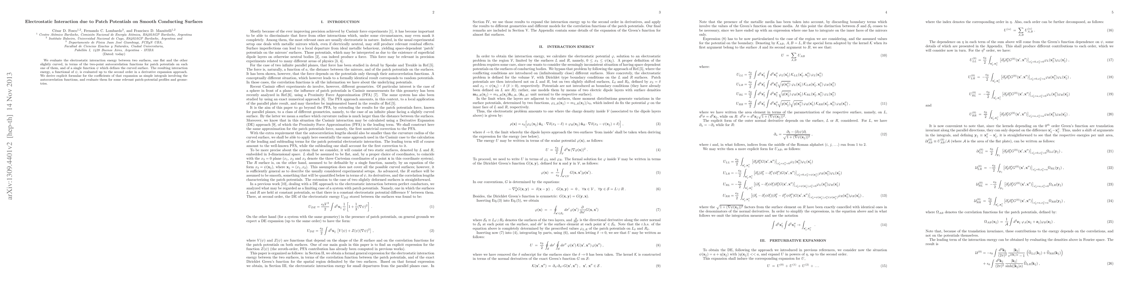 This paper evaluates the electrostatic interaction energy between a flat and a slightly curved conducting surface, using patch potentials and a derivative expansion approach. Explicit formulae for the interaction energy coefficients are derived and evaluated for various patch-potential profiles and geometries.