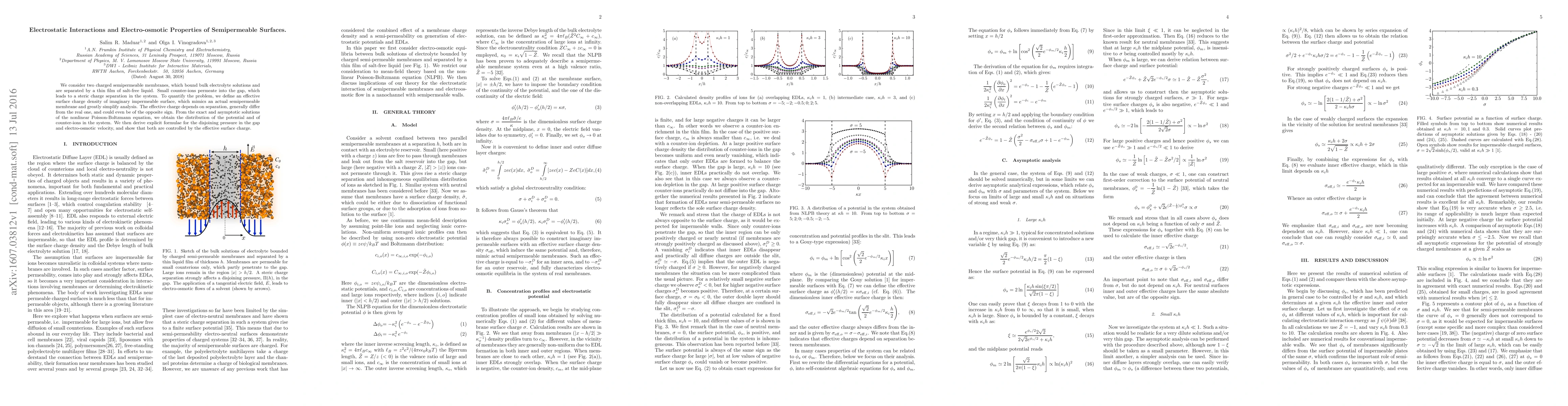 We consider two charged semipermeable membranes, which bound bulk electrolyte solutions and are separated by a thin film of salt-free liquid. Small counter-ions permeate into the gap, which leads to a steric charge separation in the system. To quantify the problem, we define an effective surface charge density of imaginary impermeable surface, which mimics an actual semipermeable membrane and greatly simplify analysis. The effective charge depends on separation, generally differ from the real one, and could even be of the opposite sign. From the exact and asymptotic solutions of the nonlinear Poisson-Boltzmann equation, we obtain the distribution of the potential and of counter-ions in the system. We then derive explicit formulae for the disjoining pressure in the gap and electro-osmotic velocity, and show that both are controlled by the effective surface charge.