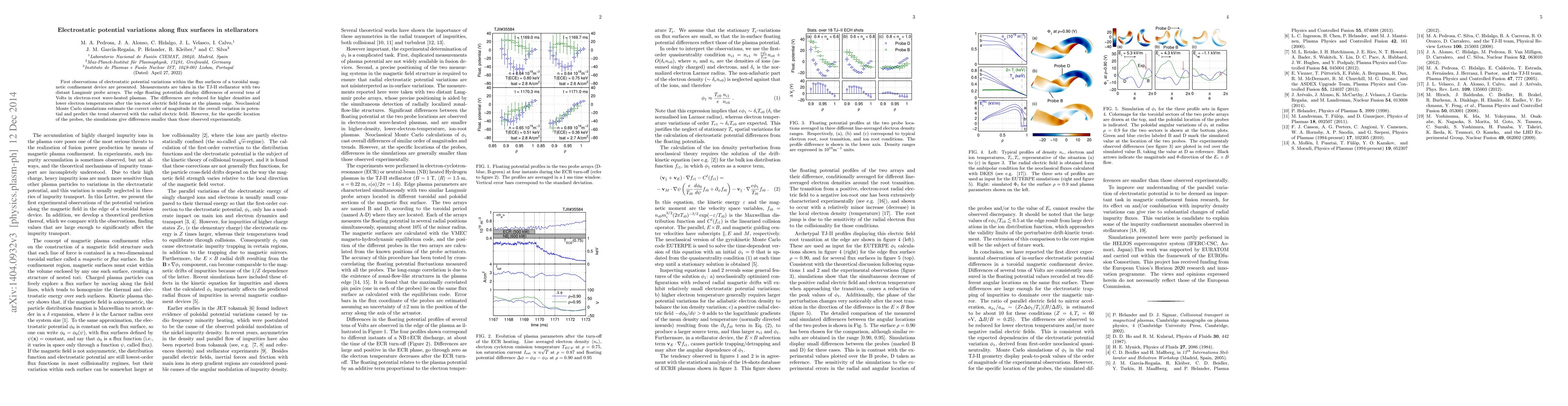 This paper reports on the first observations of electrostatic potential variations within the flux surfaces of a TJ-II stellarator, revealing significant differences in edge floating potentials in electron-root wave-heated plasmas. Neoclassical Monte Carlo simulations match the overall potential variation trend but underestimate the specific probe location differences.