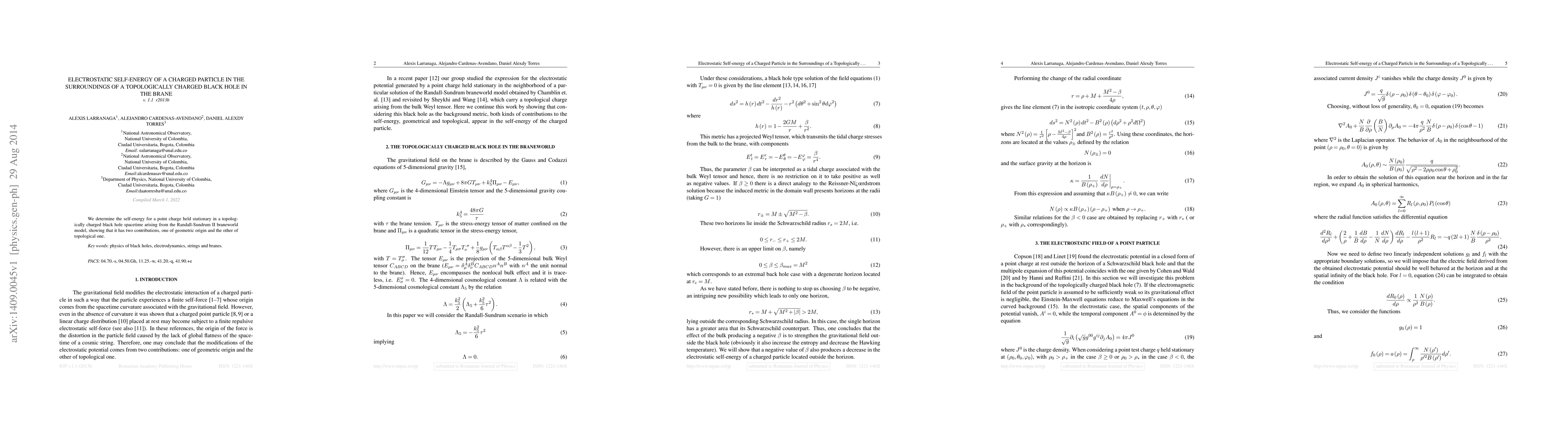 A study on a charged particle in the vicinity of a topologically charged black hole reveals two types of self-energy contributions: geometric and topological, arising from a Randall-Sundrum II brane model.