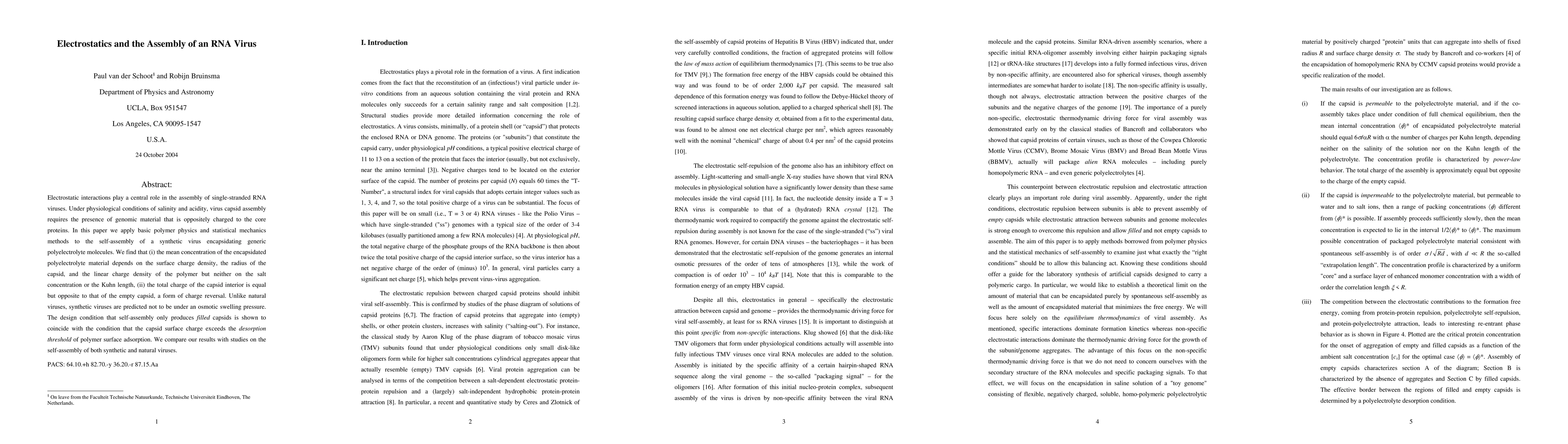 Researchers found that electrostatic interactions play a crucial role in assembling RNA viruses, with synthetic viruses requiring oppositely charged genomic material to form capsids, unlike natural viruses which experience osmotic swelling pressure.