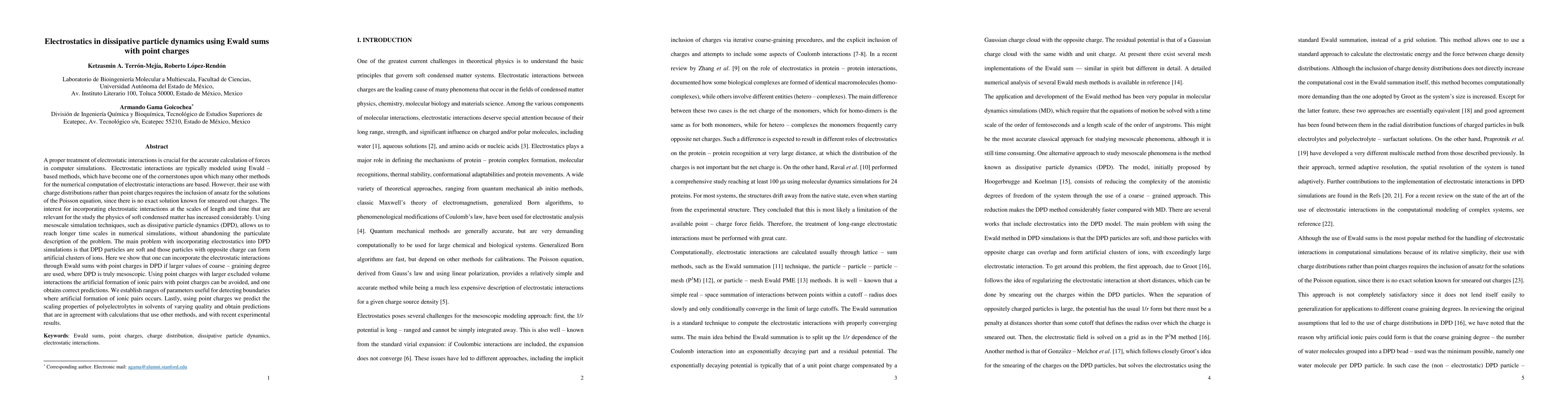 Researchers successfully incorporated electrostatic interactions into dissipative particle dynamics simulations using Ewald sums with point charges, avoiding artificial ion clusters and predicting correct scaling properties of polyelectrolytes in solvents.