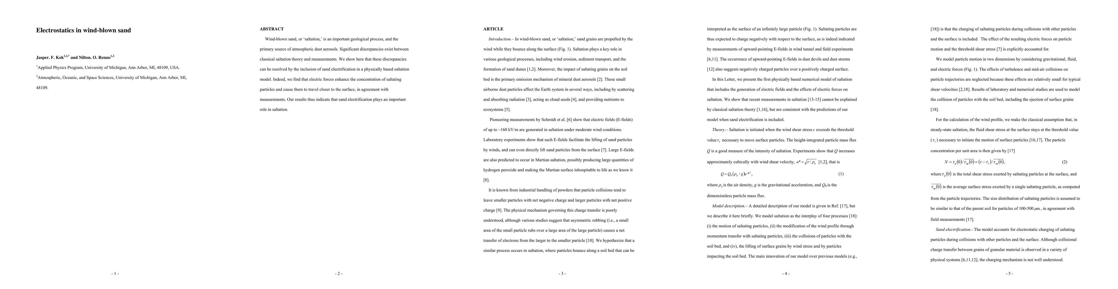 This paper resolves discrepancies between classical saltation theory and measurements by incorporating sand electrification into the model, showing that electric forces enhance particle concentration and cause them to travel closer to the surface, indicating a significant role of sand electrification in wind-blown sand processes.