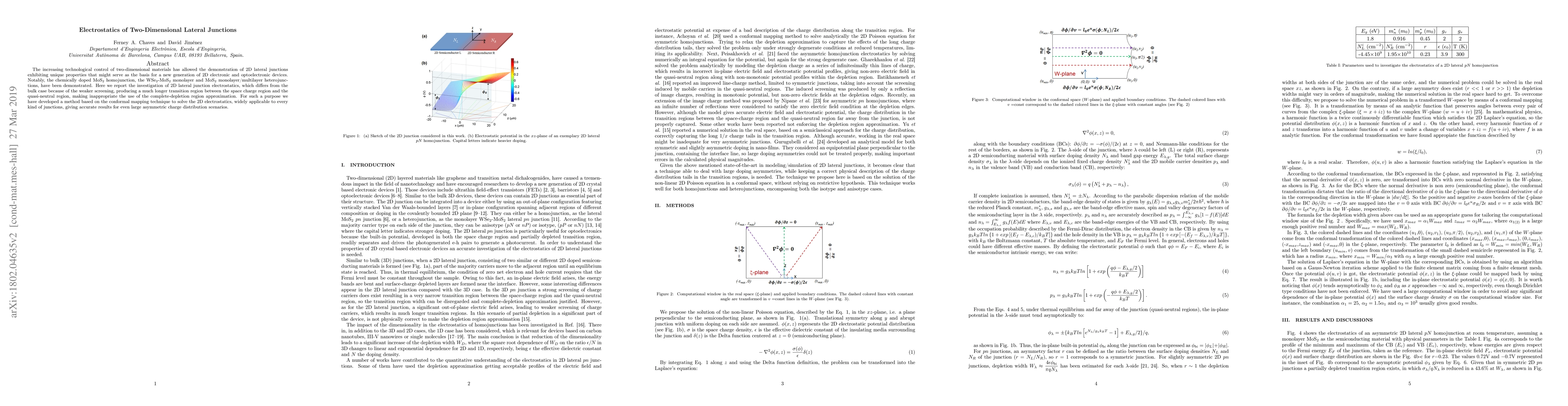 This paper investigates the electrostatics of two-dimensional lateral junctions in materials like MoS$_2$ and WSe$_2$, revealing unique properties due to weaker screening compared to bulk materials. The authors develop a conformal mapping technique to accurately solve 2D electrostatic problems, applicable to various junction types and large charge distributions.
