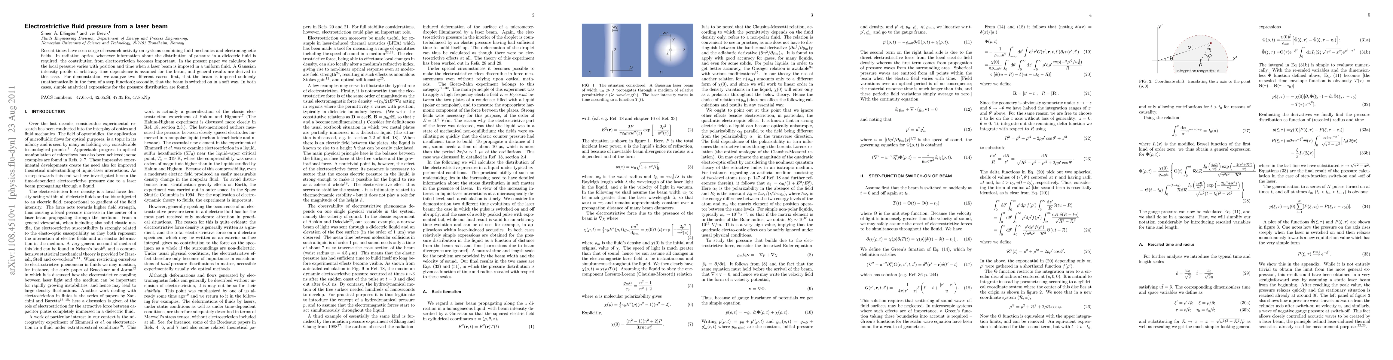 This paper investigates the electrostrictive fluid pressure induced by a laser beam in a dielectric fluid. Analytical expressions for pressure distribution are derived for both sudden and gradual laser beam impositions, revealing the temporal and spatial variations in pressure due to electrostriction effects.
