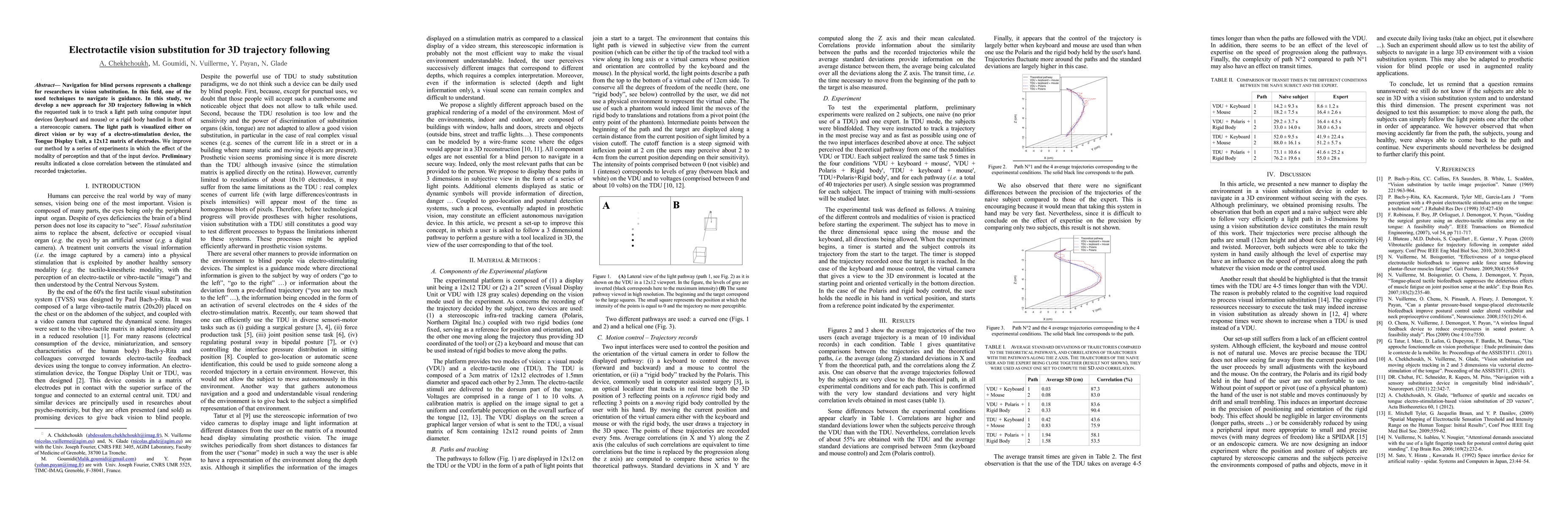 Researchers developed a new method for blind navigation using electro-tactile vision substitution to track 3D trajectories through keyboard and mouse input or a handled rigid body, achieving promising results.