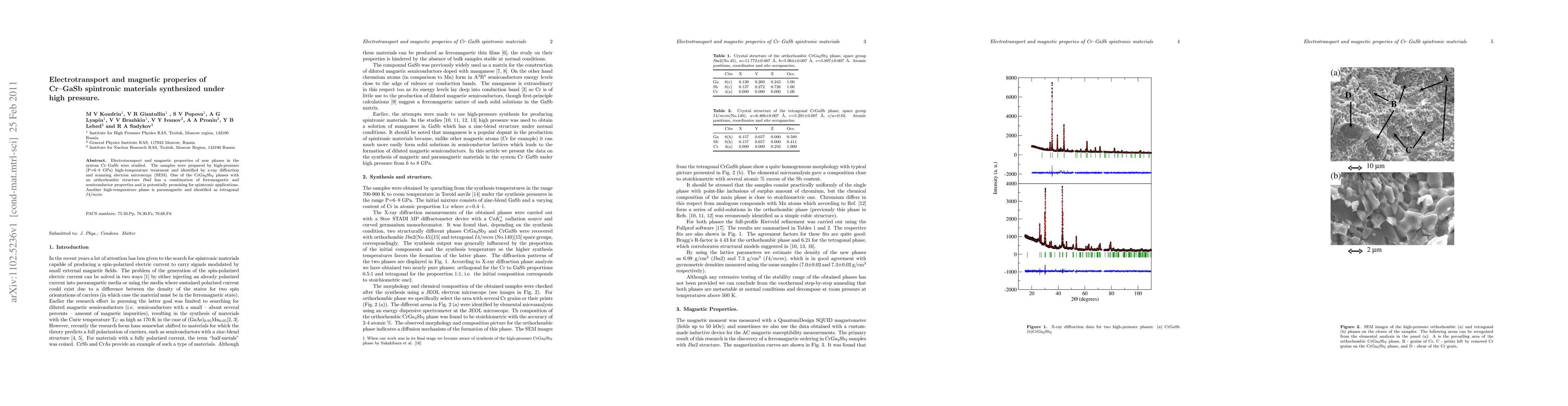 The research synthesizes new Cr-GaSb phases under high pressure and temperature, identifying a ferromagnetic, semiconducting CrGa2Sb2 phase with orthorhombic Iba2 structure, promising for spintronics. Another tetragonal I4/mcm phase is found to be paramagnetic.