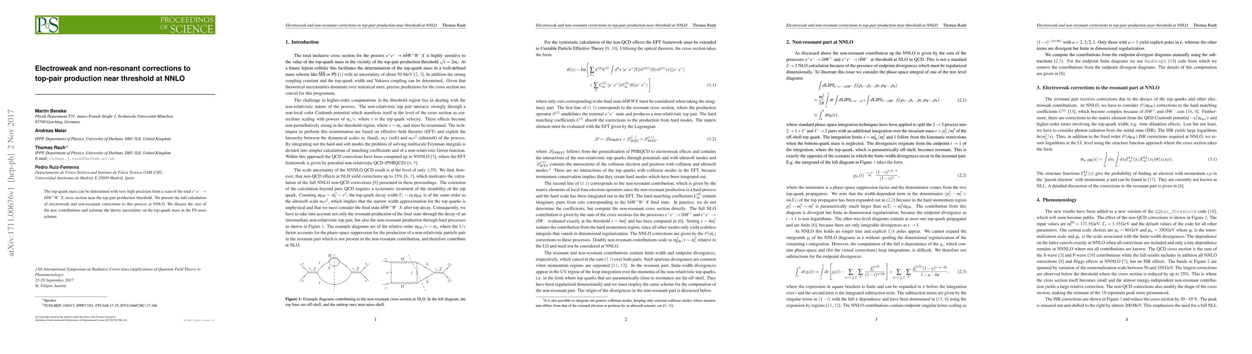 This paper provides a detailed calculation of electroweak and non-resonant corrections to top-pair production near the threshold at next-to-next-to-leading order (NNLO). It estimates the impact of these corrections on the precision of determining the top-quark mass and assesses the associated theory uncertainty in the PS mass scheme.