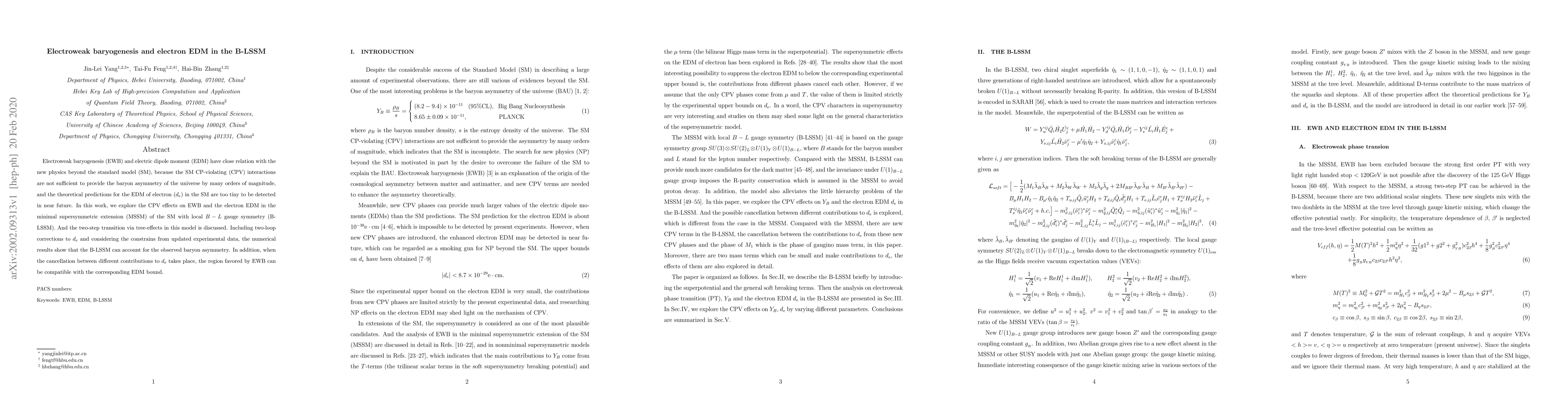 This paper explores the connection between electroweak baryogenesis and the electron electric dipole moment (EDM) in the B-LSSM, demonstrating that the model can account for the observed baryon asymmetry and potentially reconcile EDM constraints with experimental data.