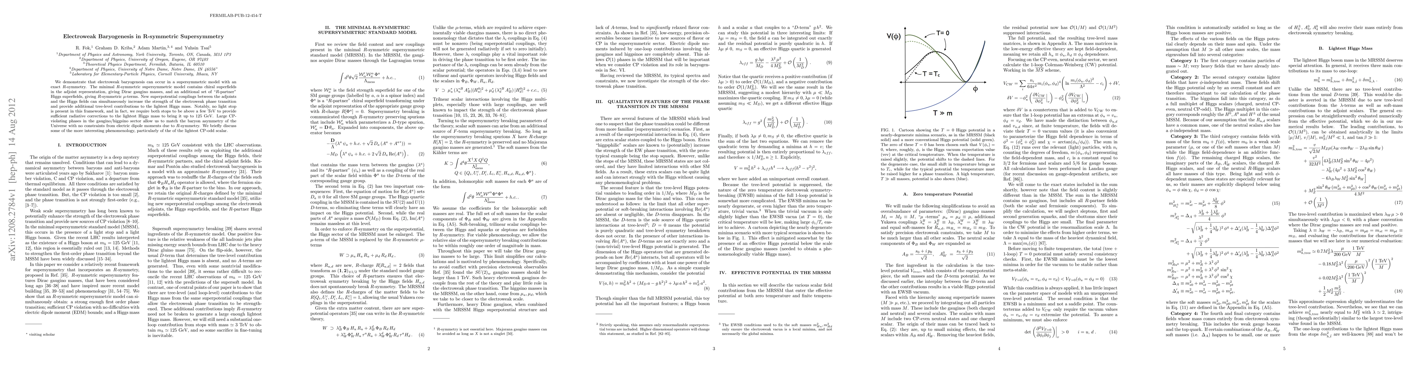 We demonstrate that electroweak baryogenesis can occur in a supersymmetric model with an exact R-symmetry. The minimal R-symmetric supersymmetric model contains chiral superfields in the adjoint representation, giving Dirac gaugino masses, and an additional set of "R-partner" Higgs superfields, giving R-symmetric \mu-terms. New superpotential couplings between the adjoints and the Higgs fields can simultaneously increase the strength of the electroweak phase transition and provide additional tree-level contributions to the lightest Higgs mass. Notably, no light stop is present in this framework, and in fact, we require both stops to be above a few TeV to provide sufficient radiative corrections to the lightest Higgs mass to bring it up to 125 GeV. Large CP-violating phases in the gaugino/higgsino sector allow us to match the baryon asymmetry of the Universe with no constraints from electric dipole moments due to R-symmetry. We briefly discuss some of the more interesting phenomenology, particularly of the of the lightest CP-odd scalar.