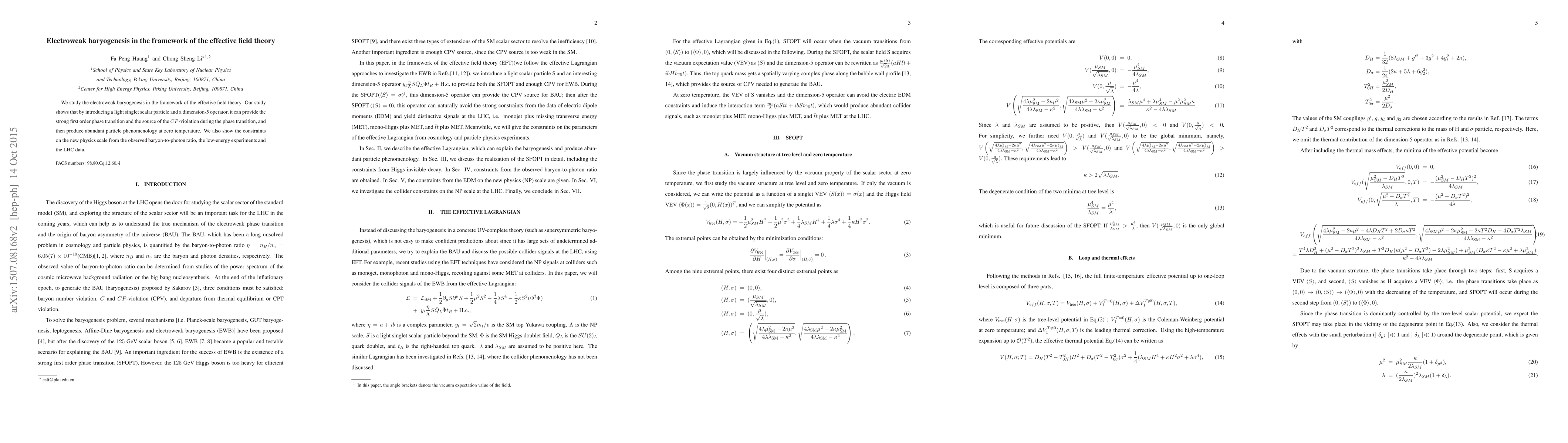 We study the electroweak baryogenesis in the framework of the effective field theory. Our study shows that by introducing a light singlet scalar particle and a dimension-5 operator, it can provide the strong first order phase transition and the source of the CP-violation during the phase transition, and then produce abundant particle phenomenology at zero temperature. We also show the constraints on the new physics scale from the observed baryon-to-photon ratio, the low-energy experiments, and the LHC data.